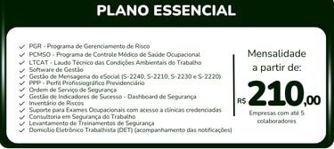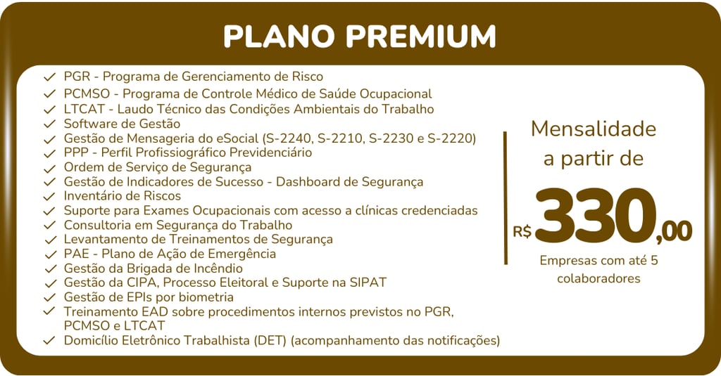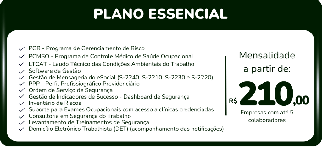 PGR - Programa de Gerenciamento de Riscos, PCMSO - Programa de Controle Médico de Saúde Ocupacional, LTCAT - Laudo Técnico das Condições Ambientais do Trabalho, LIP - Laudo de Insalubridade e Periculosidade, PAE - Plano de Ação de Emergências, OSS - Ordem de Serviço de Segurança, PPP - Perfil Profissiográfico Previdenciário e muito mais.